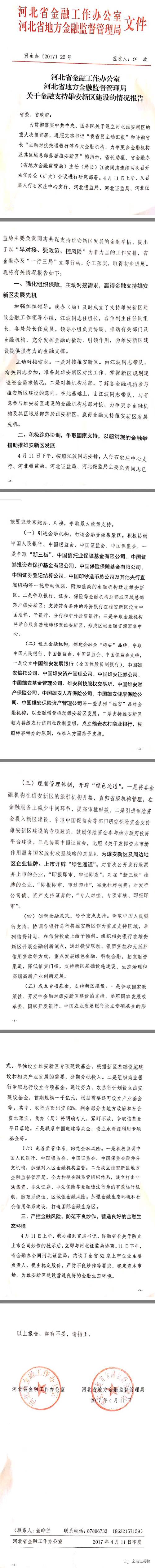 报告显示，4月11日上午，河北省金融办接到省领导关于防止上市公司炒作的批示后，立即与河北证监局协商，并于11月下午会同河北证监局，约谈了全省52家上市企业主要负责人，提出稳定股价、严防不良炒作等要求，稳定资本市场，为雄安新区建设营造良好的金融生态环境。<br />
