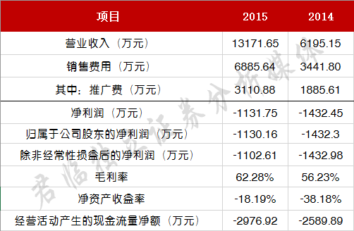 由于还处于申请办理期，公司2016年财报尚未公布，不过从2014和2015年的经营数据中可以看出，公司业务发展迅猛，营收2015年同比增长112.6%，由于处在烧钱抢占市场阶段，公司仍然处于亏损状态，不过亏损同比减少。<br />