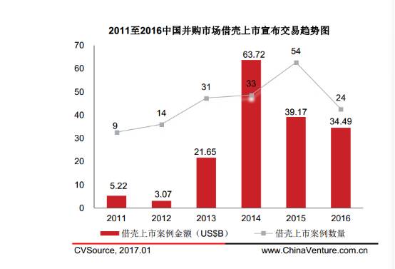 2009年初至2016年底壳价值逐步提升（图片来源，Wind、招商证券）<br />