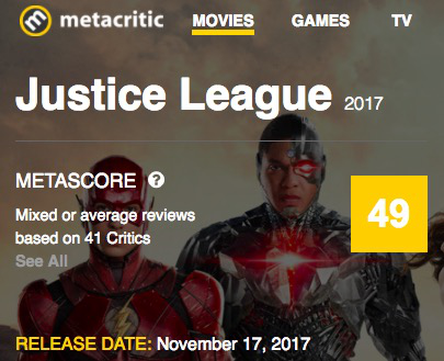 11月16日，公映前一天，华纳/DC的年末大作《正义联盟》烂番茄口碑终于解禁，再现了DC扩展宇宙（DCEU）不受媒体待见的局面。<br />