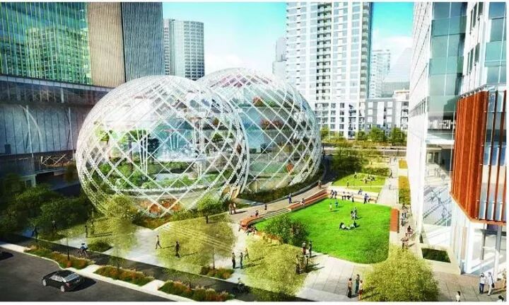 2013年公布的亚马逊西雅图新总部的设计图（图来自《一网打尽：贝佐斯与亚马逊时代》）<br />