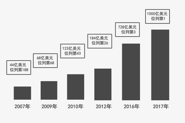 2015 年7 月，其市值冲破 2600 亿美元，超越了实体零售商沃尔玛，成功问鼎全球零售业王者的宝座。<br />