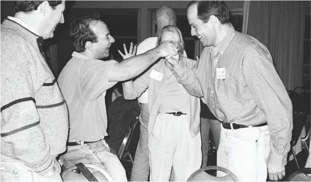&nbsp;贝佐斯和荣立执行官布和 谷歌早期的投资者（图来自《一网打尽：贝佐斯与亚马逊时代》）<br />