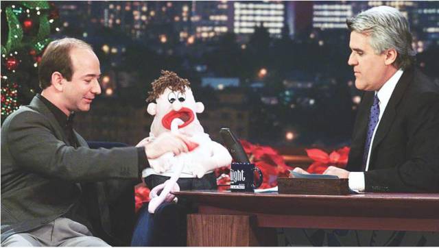 1999年12月29日，贝佐斯参加NBC电视台的今夜秀节目（图来自《一网打尽：贝佐斯与亚马逊时代》）<br />