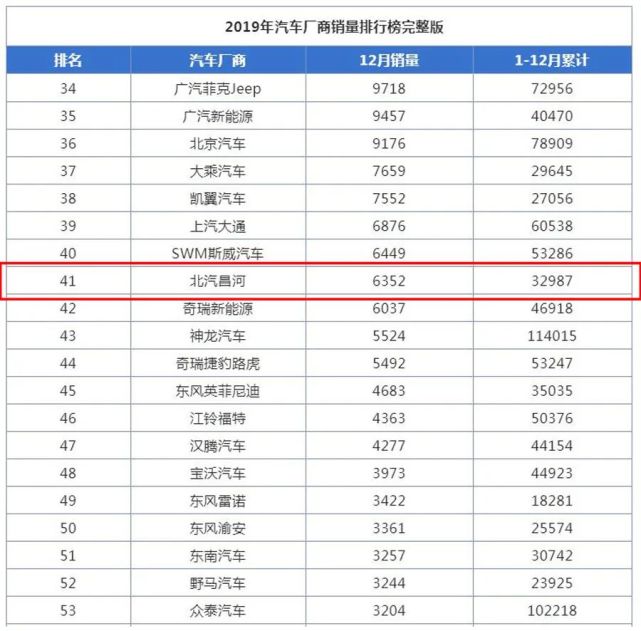但到了2018年，也就是上面提到的&ldquo;移动众创空间&rdquo;元年，北汽昌河的销量只剩下60052台，缩水了近乎三分之二。更让人万万没想到的是，原本想着昌河能在2019年实现爆发式成长，现实却给其开了个大玩笑。数据显示，整个2019年年度，北汽昌河的销量又在2018年的基础上缩水了近一半，只剩下32987台。<br />