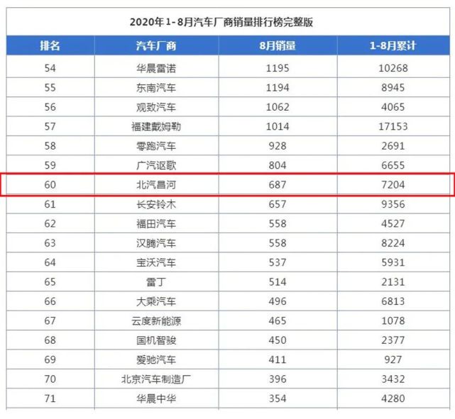 不过，这还不是最惨的。由于2020年年初的&ldquo;新冠肺炎&rdquo;疫情冲击，整个2020年前8个月份，北汽昌河的销量只剩下可怜的7204台，还没有早已停止合资的长安铃木销量好。<br />