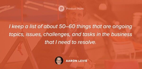 同时，我还有一个清单，上面写着大概 50 到 60 个话题，问题、挑战、需要完成的任务，这里面的内容无所不包，既有「电子邮件营销计划带来多少的客户」，也有「明年的产品路线路设计应该是怎样的」。<br />